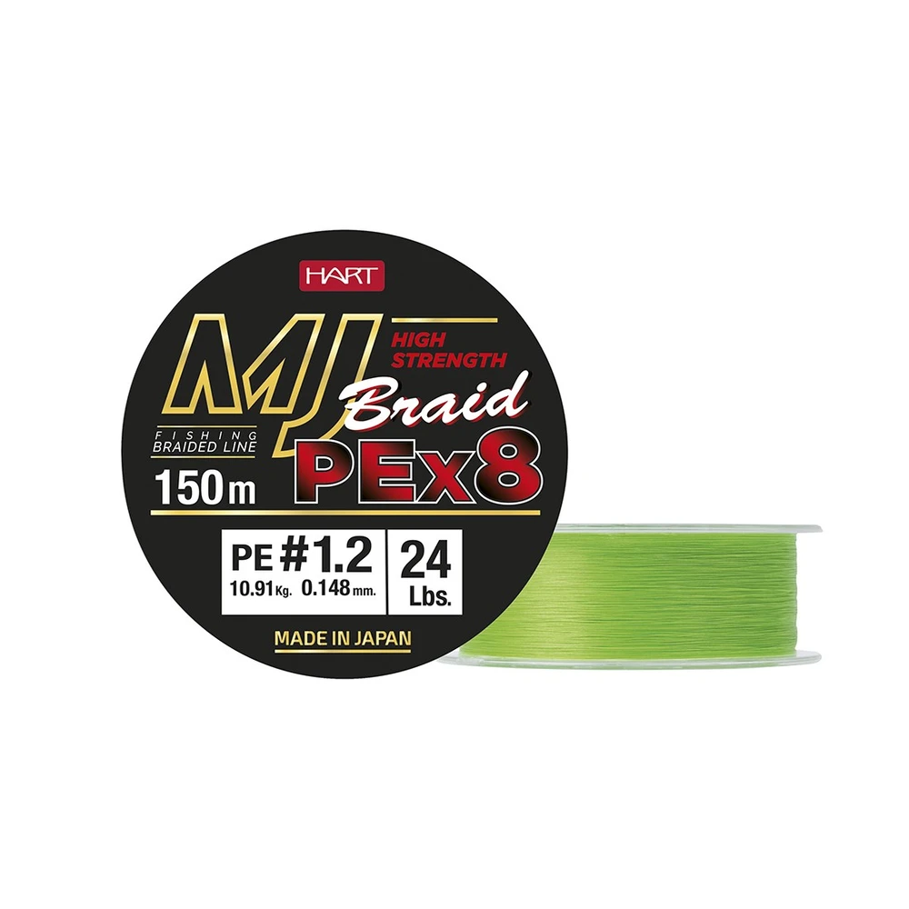 Hart MJ Braid PEx8 300m is een professioneel gevlochten vislijn uit Japan met 8 nauw geweven PE-strengen die garant staan voor maximale soepelheid en kracht. De lijn heeft een perfect rond profiel en is voorzien van een speciale coating die zowel het werpcomfort als de duurzaamheid aanzienlijk verbetert. Dankzij de fluogroene kleur blijf je altijd goed zicht houden op je lijn, zelfs bij moeilijke lichtomstandigheden. Geschikt voor uiteenlopende technieken – van lichte finesse tot diepzeevissen – en beschikbaar in zes verschillende trekkrachten tot maar liefst 100 lb. Een echte must-have voor vissers die geen compromissen willen.